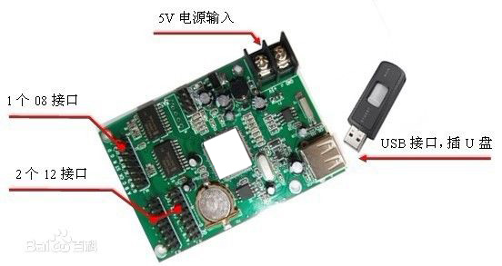 用户先在计算机上编辑播放节目,然后把节目存储在U盘上,再插入异步控制卡,异步控制卡上传并存储节目,再控制LED显示屏显示。即使计算机关闭了,显示屏也能够进行显示。它广泛用于显示文字信息的LED显示屏,并且不用布网线。