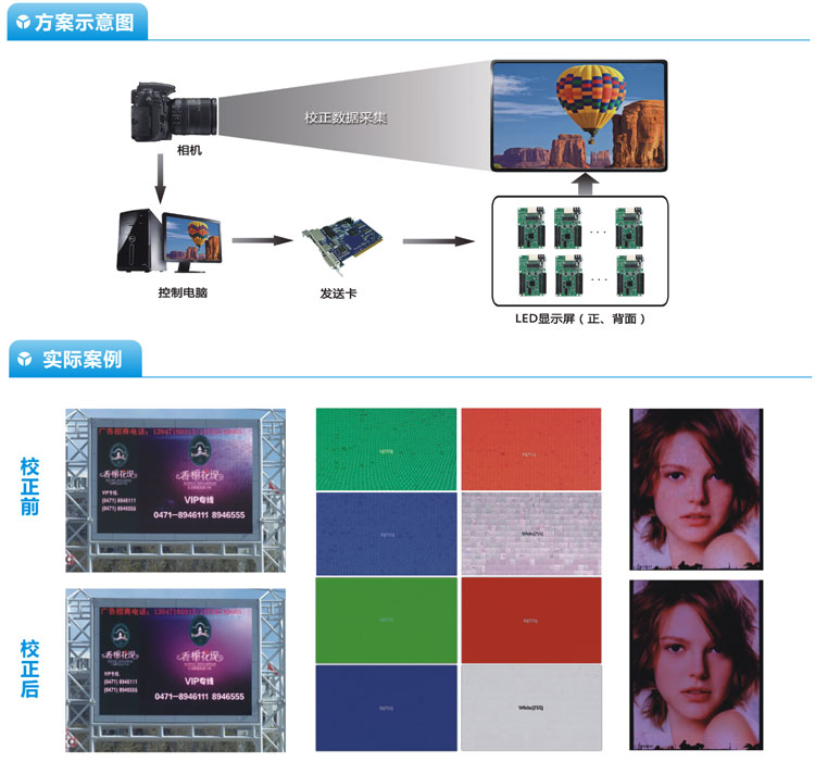 高精度逐点校正方案支持14bit高精度色度、亮度一体化逐点校正;可使用普通单反相机实现校正系数采集;支持专业校正设备校正系数数据导入;操作简单,方便快捷,可轻松实现现场高速校正。