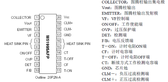 M51995A 是MITSUBISHI 公司推出的专门为AC/DC 变换而设计的离线式开关电源初级PWM 控制芯片。可以直接驱动MOSFET。M51995A 不仅具有高频振荡和快速输出能力,而且具有快速响应的电流限制功能。它的另一大特点是过流时采用断续方式工作,具备过流及短路保护功能。关于芯片的具体资料可到网上查询。