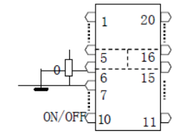 ON/OFF 端(7 脚)为低电平时芯片才工作,阈值电压为2.4V。本电路被直接接地,不进行控制。热沉端也被直接接地,以获取较好的热稳定性。芯片的5、6、15、16 脚内部是短接的,四个热沉端通过5 脚接地。